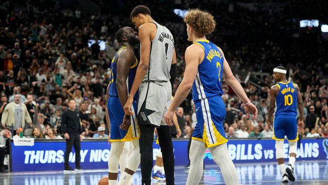 马刺队球星维克托·温巴尼亚马和勇士队老将德雷蒙德·格林在后者得分后发生了口角。